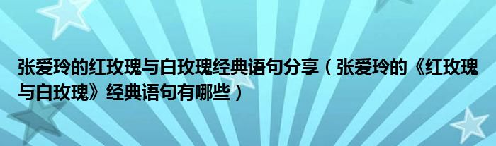 张爱玲的红玫瑰与白玫瑰经典语句分享(张爱玲的《红玫瑰与白玫瑰》经典语句有哪些)