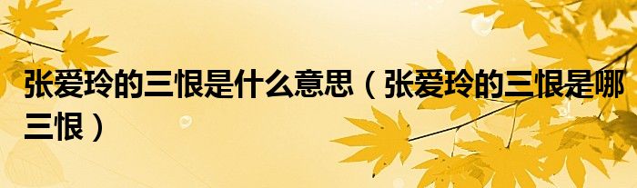 大家好,田田为了大家解答以上张爱玲的三恨是什么意思,张爱玲的三恨是哪三恨的问题,也是到网上收集了关与张爱玲的三恨是什么意思,张爱玲的三恨是哪三恨的信息,下面分享给大家一起了解下吧。