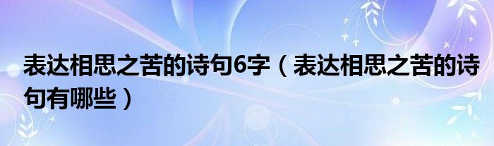 表达相思之苦的诗句6字(表达相思之苦的诗句有哪些)