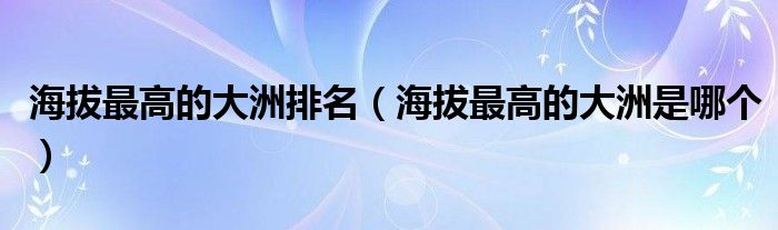 海拔最高的大洲排名(海拔最高的大洲是哪个)
