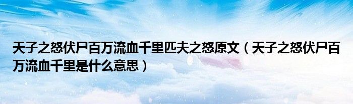 天子之怒伏尸百万流血千里匹夫之怒原文(天子之怒伏尸百万流血千里是什么意思)