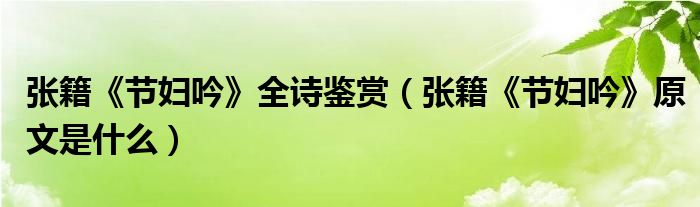 张籍《节妇吟》全诗鉴赏(张籍《节妇吟》原文是什么)