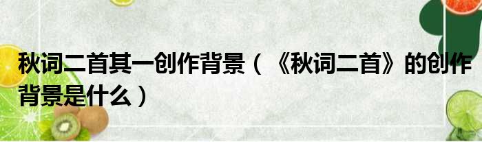 秋词二首其一创作背景(《秋词二首》的创作背景是什么)
