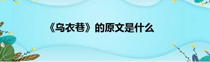 1、 《乌衣巷》 的原文是什么原文:朱雀桥边野草花,乌衣巷口夕阳斜。旧时王谢堂前燕,飞入寻常百姓家。