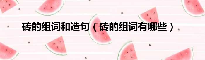 1、 砖的组词有哪些砖瓦、砖头、添砖加瓦、敲门砖、砖茶、茶砖、花砖、瓷砖、冰砖、面砖、砖雕、空心砖、玻璃砖、煤砖、抛砖引玉、缸砖、砖匠、抛晶砖、怀砖、磨砖、地板砖、增砖添瓦;