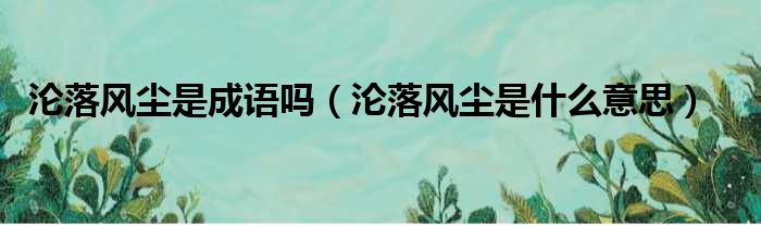 沦落风尘是成语吗(沦落风尘是什么意思)