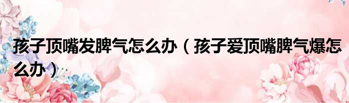 孩子顶嘴发脾气怎么办(孩子爱顶嘴脾气爆怎么办)