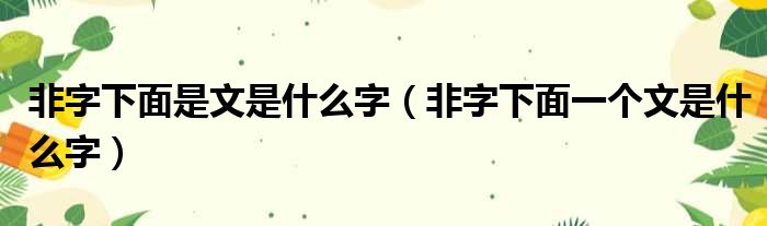 1、 非字下面一个文是什么字一个不是一个文艺思想:费,拼音fi,F i。