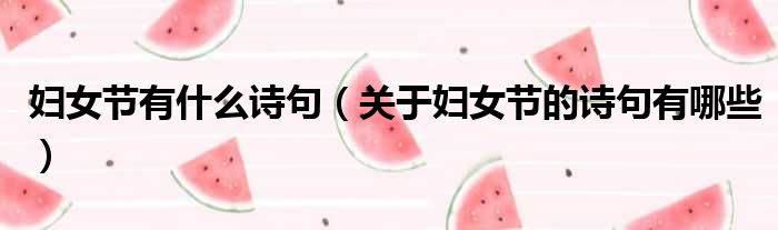 妇女节有什么诗句(关于妇女节的诗句有哪些)