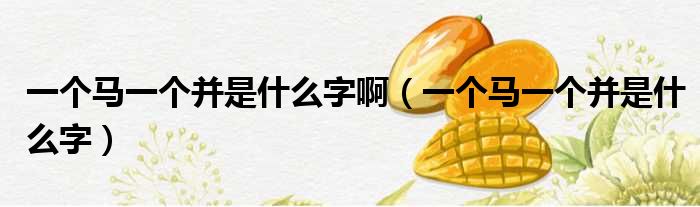 一个马一个并是什么字啊(一个马一个并是什么字)