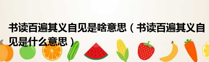 1、 书读百遍其义自见是什么意思读几百遍,书的意思自然就明白了。意思是你要先熟悉书籍,才能真正理解它们。