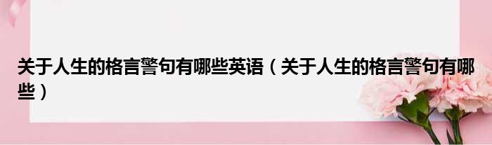 关于人生的格言警句有哪些英语(关于人生的格言警句有哪些)