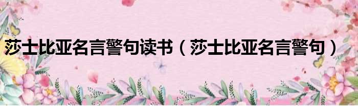 莎士比亚名言警句读书(莎士比亚名言警句)