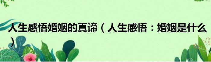 人生感悟婚姻的真谛(人生感悟:婚姻是什么)