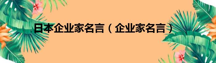 大家好,霖霖来为大家解答以上问题。日本企业家名言,企业家名言很多人还不知道,现在让我们一起来看看吧!