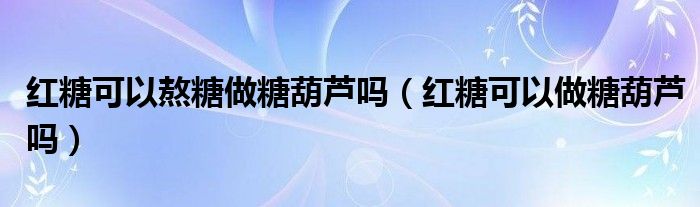 1、 红糖可以做糖葫芦吗红糖可以做糖葫芦。