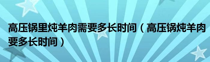 高压锅里炖羊肉需要多长时间(高压锅炖羊肉要多长时间)