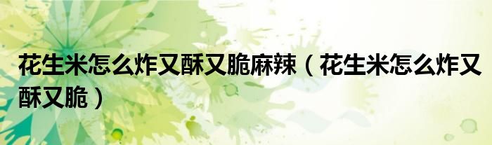 花生米怎么炸又酥又脆麻辣(花生米怎么炸又酥又脆)