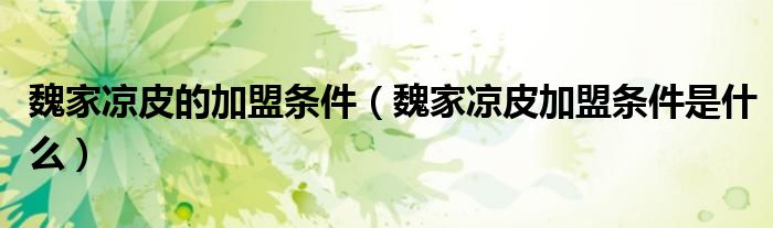 魏家凉皮的加盟条件(魏家凉皮加盟条件是什么)