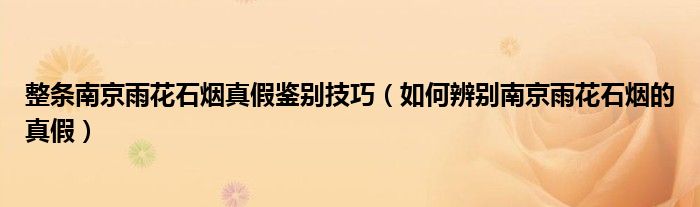 1、 如何辨别南京雨花石烟的真假透明塑料纸:真烟透明纸手感光滑,透明度和光泽好,而假烟透明纸光泽度和透明度比真烟差,手感呆滞。