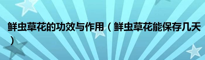 大家好,刘刘为了大家解答以上鲜虫草花的功效与作用,鲜虫草花能保存几天的问题,也是到网上收集了关与鲜虫草花的功效与作用,鲜虫草花能保存几天的信息,下面分享给大家一起了解下吧。