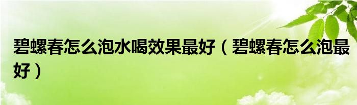碧螺春怎么泡水喝效果最好(碧螺春怎么泡最好)