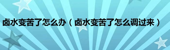 卤水变苦了怎么办(卤水变苦了怎么调过来)