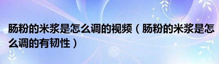 肠粉的米浆是怎么调的视频(肠粉的米浆是怎么调的有韧性)