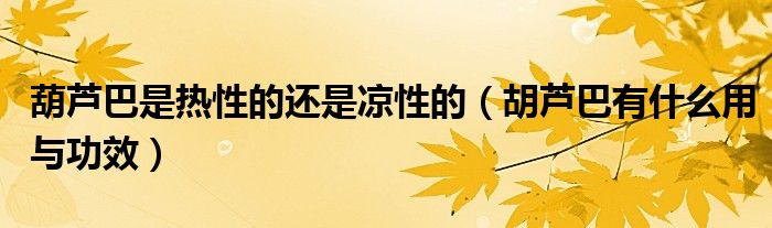 葫芦巴是热性的还是凉性的(胡芦巴有什么用与功效)