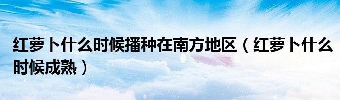 红萝卜什么时候播种在南方地区(红萝卜什么时候成熟)