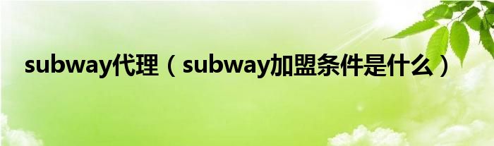 导读 大家好,刘刘为了大家解答以上subway代理,subway加盟条件是什么的问题,也是到网上收集了关与subway代理,subway加盟条件是什么的信息,下