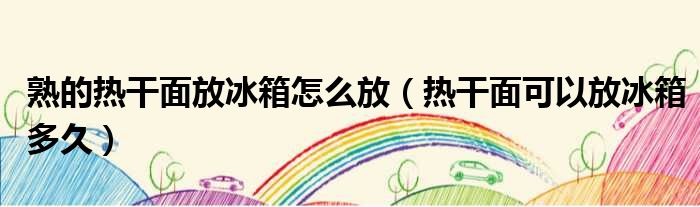 导读 大家好,刘刘为了大家解答以上熟的热干面放冰箱怎么放,热干面可以放冰箱多久的问题,也是到网上收集了关与熟的热干面放冰箱怎么放,热干面