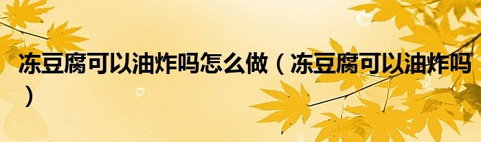 冻豆腐可以油炸吗怎么做(冻豆腐可以油炸吗)