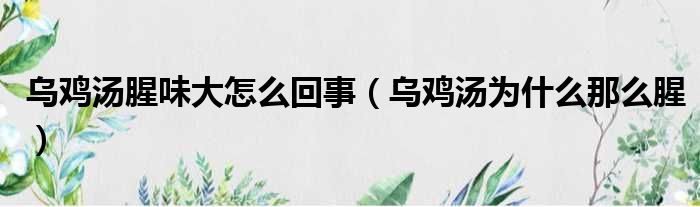 乌鸡汤腥味大怎么回事(乌鸡汤为什么那么腥)