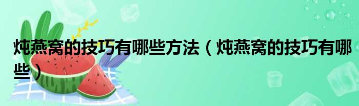 炖燕窝的技巧有哪些方法(炖燕窝的技巧有哪些)