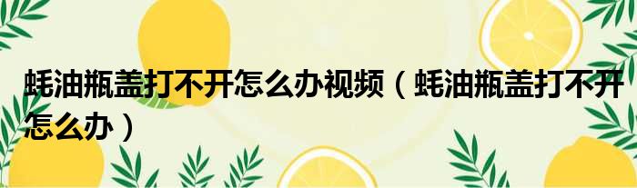 蚝油瓶盖打不开怎么办视频(蚝油瓶盖打不开怎么办)
