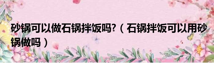 1、 石锅拌饭可以用砂锅做吗砂锅拌饭可以做。