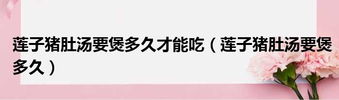 莲子猪肚汤要煲多久才能吃(莲子猪肚汤要煲多久)