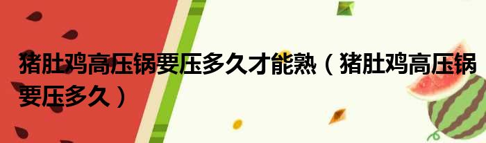 猪肚鸡高压锅要压多久才能熟(猪肚鸡高压锅要压多久)