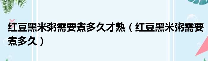 红豆黑米粥需要煮多久才熟(红豆黑米粥需要煮多久)