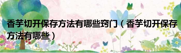 香芋切开保存方法有哪些窍门(香芋切开保存方法有哪些)