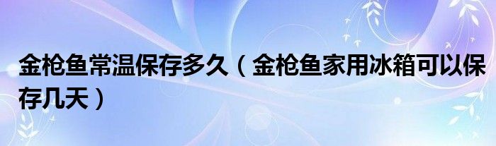 1、 金枪鱼家用冰箱可以保存几天金枪鱼放在家用冰箱里冷冻(-),可以有很好的品质。解冻后,可以在冷藏条件下保存。