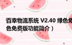 大家好,关于百幸物流系统 V2 40 绿色免费版,百幸物流系统 V2 40 绿色免费版功能简介这个很多人还不知道,小勒来为大家解答以上的问题,