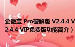 大家好,关于企微宝 Pro破解版 V2 4 4 VIP免费版,企微宝 Pro破解版 V2 4 4 VIP免费版功能简介这个很多人还不知道,小勒来为大家解答以