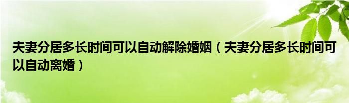 夫妻分居多长时间可以自动解除婚姻(夫妻分居多长时间可以自动离婚)
