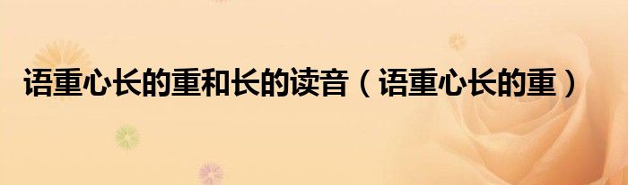 导读 大家好,小飞来为大家解答以上的问题。语重心长的重和长的读音,语重心长的重这个很多人还不知道,现在让我们一起来看看吧!1、语重心长 【