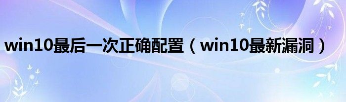 大家好,小飞来为大家解答以上的问题。win10最后一次正确配置,win10最新漏洞这个很多人还不知道,现在让我们一起来看看吧!