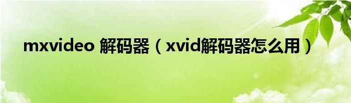 mxvideo 解码器,xvid解码器怎么用这个很多人还不知道,小飞来为大家解答以上的问题。现在让我们一起来看看吧!