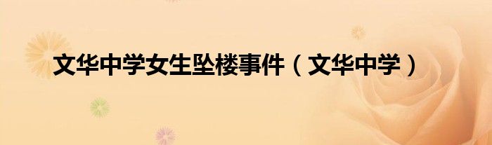 大家好,小飞来为大家解答以上的问题。文华中学女生坠楼事件,文华中学这个很多人还不知道,现在让我们一起来看看吧!