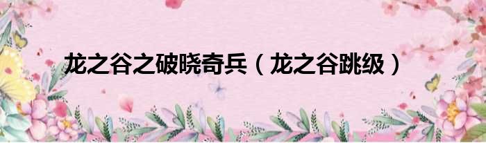 龙之谷之破晓奇兵,龙之谷跳级这个很多人还不知道,小飞来为大家解答以上的问题。现在让我们一起来看看吧!